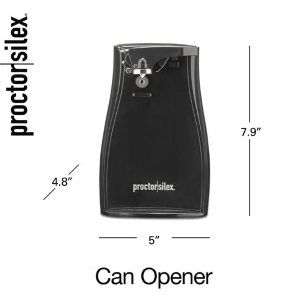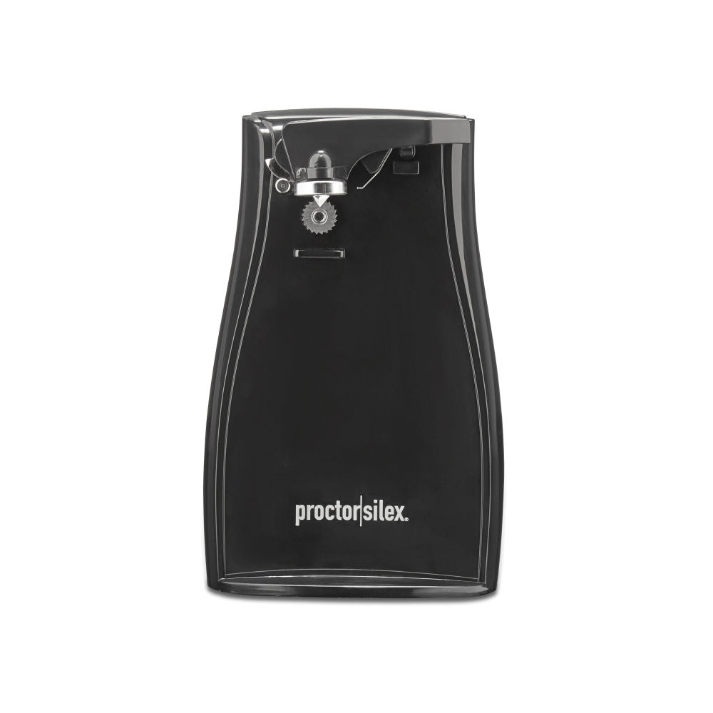 The Proctor Silex® Power Opener™ Can Opener is easy to clean with a washable cutting lever that easily twists off. The can opener is packed with convenient features that make your life easier. It includes a built-in knife sharpener, located in the back of the opener, to help keep your kitchen knives their sharpest without the need for a separate sharpening tool.