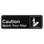 Alert guests and customers with this durable "Caution/Watch Step" sign, perfect for reminding people to be safe on tricky or slippery terrain.