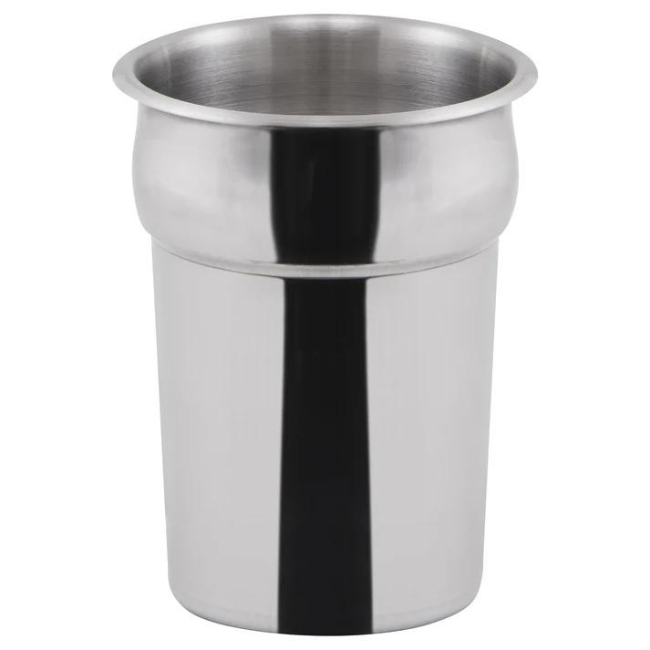 Durable stainless steel round inset, 2-1/2 quart capacity, perfect for buffets and food service use.