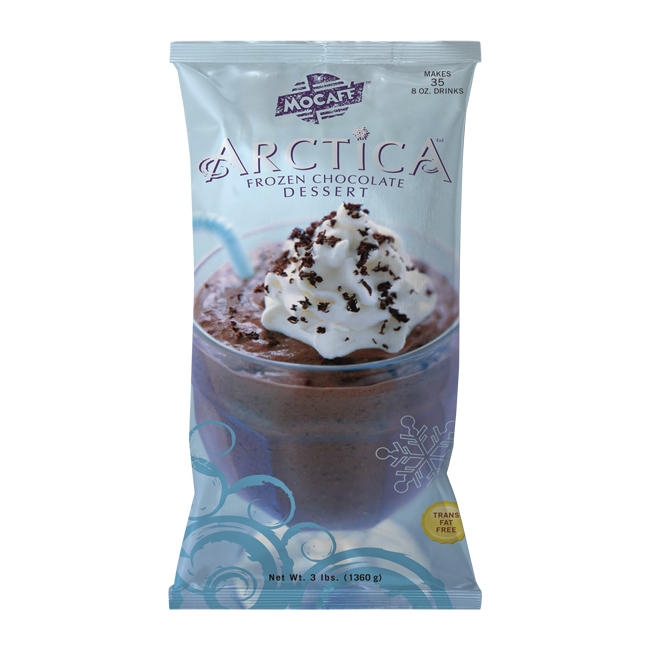 Indulge in MOCAFE Arctica Frozen Chocolate Frappé mix. Instantly blend this rich, creamy frozen hot chocolate dessert with ice for the ultimate treat.
