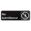 Durable black "No Admittance" sign for offices, factories, and restricted areas. Clear, easy-to-read lettering and anti-glare surface. Self-adhesive backing for simple mounting.