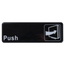 Durable, black "Pull" sign (9"x3") with self-adhesive backing for easy mounting. Features anti-glare surface and clear lettering for high visibility.
