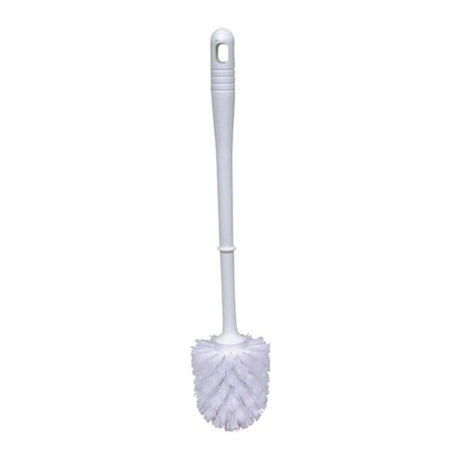 This O-Cedar Spiral Bowl Brush features a fully-bristled, staple set head and durable 1" polypro bristles that eliminate rusting. The 14"-long plastic handle effectively reaches under the rim for a thorough clean.