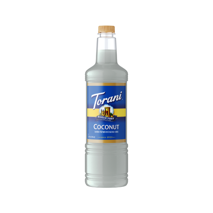 Enjoy the full-flavored, sweet taste of Torani Sugar-Free Coconut Syrup in a convenient 1-liter PET bottle. Zero calories and perfect for coffee, lattes, cocktails, and mocktails.