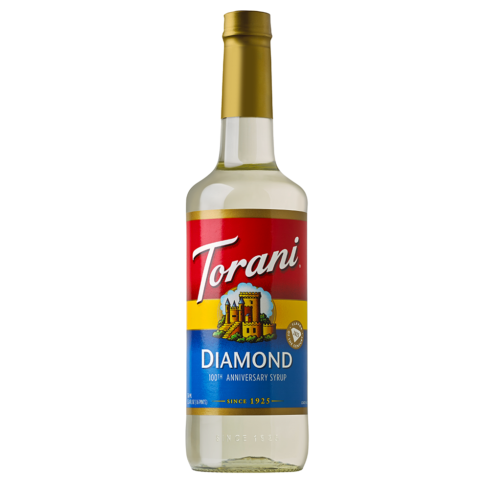 Torani Diamond Syrup features a bright blend of bubbly and vanilla notes, perfect for elevating coffee, desserts, and celebratory drinks.