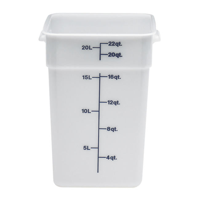 The CamSquare Container White 22 qt is perfect for food storage and organization in commercial kitchens. Made from durable, high-quality materials, this container is designed to withstand heavy use while maintaining its integrity. Its spacious 22-quart capacity accommodates large quantities of ingredients, while the clear construction allows for easy visibility of contents. Ideal for restaurants, catering, and food prep, the CamSquare Container features stackable design and easy-to-read measurements, ensuring efficient storage and handling. Keep your kitchen organized and efficient with this essential tool.