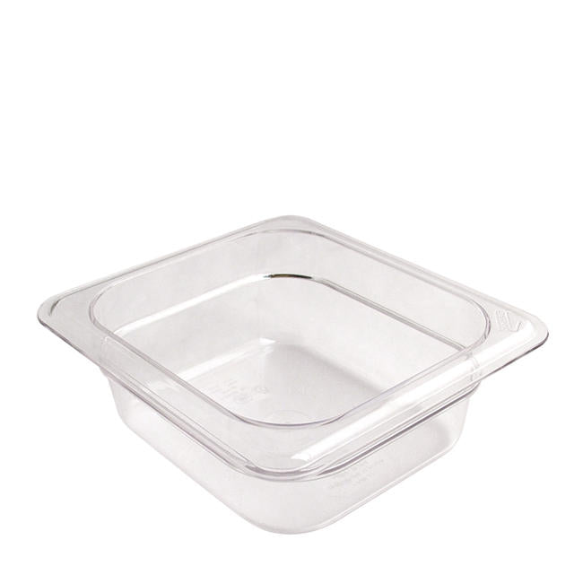 Discover the Camwear Food Pan Sixth Size, measuring 2 1/2 inches deep and crafted from durable clear polycarbonate. This versatile food storage solution is perfect for restaurants and catering services, providing excellent visibility for easy inventory management. Its stain-resistant, BPA-free material ensures safety and longevity, while the smooth edges promote easy handling. Ideal for keeping ingredients fresh and organized, this food pan is a must-have for any commercial kitchen. Enhance your food storage efficiency with Camwear's reliable design today!