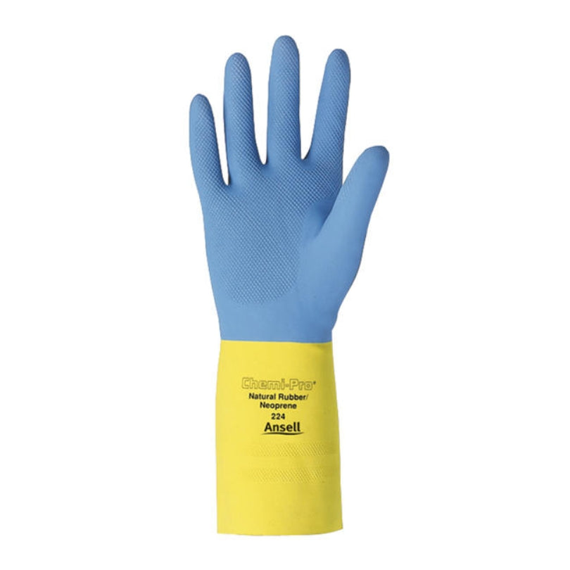 Discover the Chemi-Pro Natural Rubber Glove in vibrant blue and yellow, designed for optimal protection and comfort. These small-sized gloves provide excellent chemical resistance and durability, making them ideal for various tasks, from household cleaning to industrial applications. Their natural rubber composition ensures a secure fit and superior grip, while the eye-catching colors add a touch of style. Perfect for professionals and DIY enthusiasts alike, these gloves are a must-have for safety and efficiency.