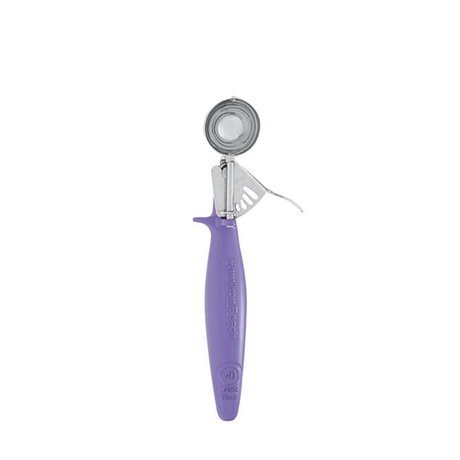 Vollrath #40 Orchid Disher: This high-quality stainless steel portion scoop features a durable, orchid color-coded plastic handle and provides a 0.75 oz (3/4 oz) serving size. Ideal for controlled portions of soft foods in commercial kitchens, this NSF-certified disher is part of the Jacobs Pride Collection and is dishwasher safe with antimicrobial protection. Perfect for restaurants and foodservice establishments needing reliable portion control.