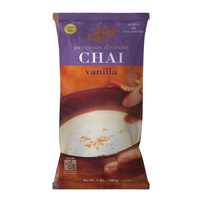 Indulge in MOCAFE Precious Divinity Vanilla Chai Latte, an instant mix featuring a blend of fresh ginger, clove, cardamom, cinnamon, wildflower honey, and estate-grown Darjeeling black tea, finished with sweet vanilla. Enjoy this wonderfully fragrant beverage hot or iced.