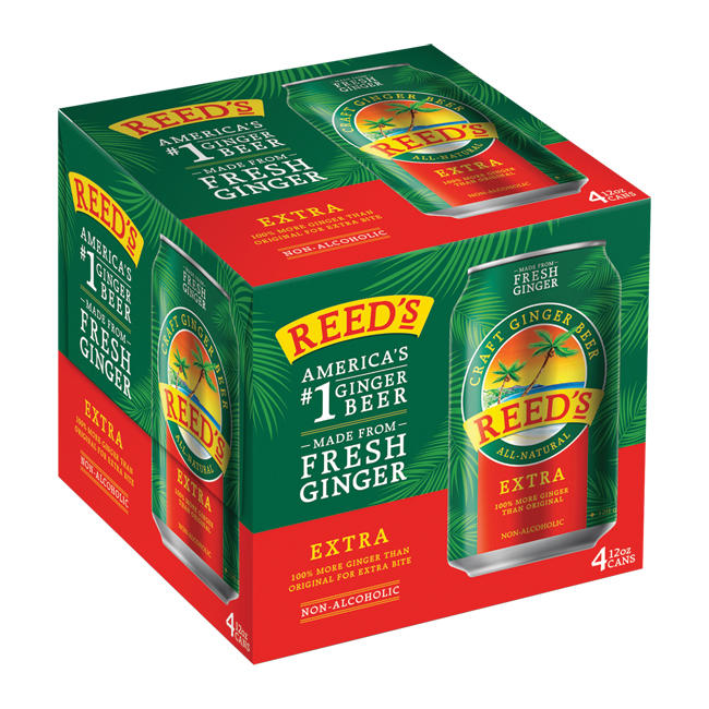 Experience the bold, authentic flavor of Reed's Extra Ginger Beer, crafted with REAL fresh ginger root, natural fruit juices (pineapple, lemon, lime), honey, and spices. Perfect for mixing cocktails or enjoying on its own. Non-GMO and Gluten-Free.