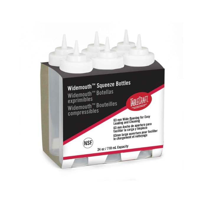 Durable, natural-top 24 oz squeeze bottle with a wide cone tip, perfect for any condiment. Easy to fill and clean. Made in the USA.