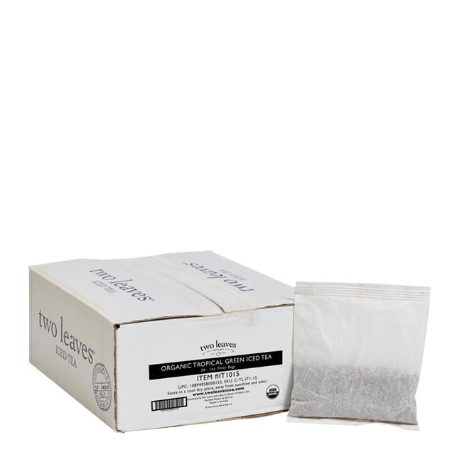 Enjoy the chill of Two Leaves and a Bud Organic Tropical Green Iced Tea. This Fairtrade certified, lightly steamed Japanese-style sencha is infused with refreshing, tropically-flavored melon-berry notes, making it the perfect full-flavored, organic iced tea.