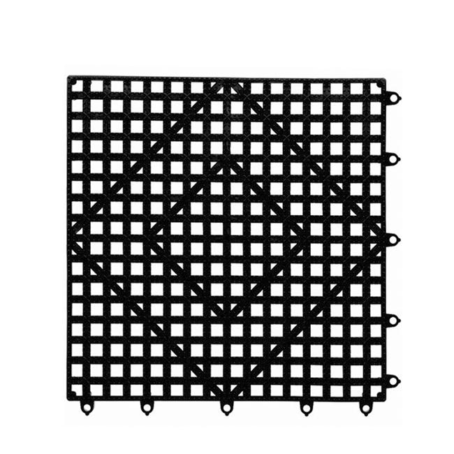 The Versa-Mat Black 12" x 12" Interlocking Bar Matting is ideal for commercial use in bars, walk-in coolers, and dry storage. Its unique non-slip design provides superior airflow and moisture drainage for faster drying, protecting your glassware and china from marring. This durable matting is also commercial dishwasher safe.